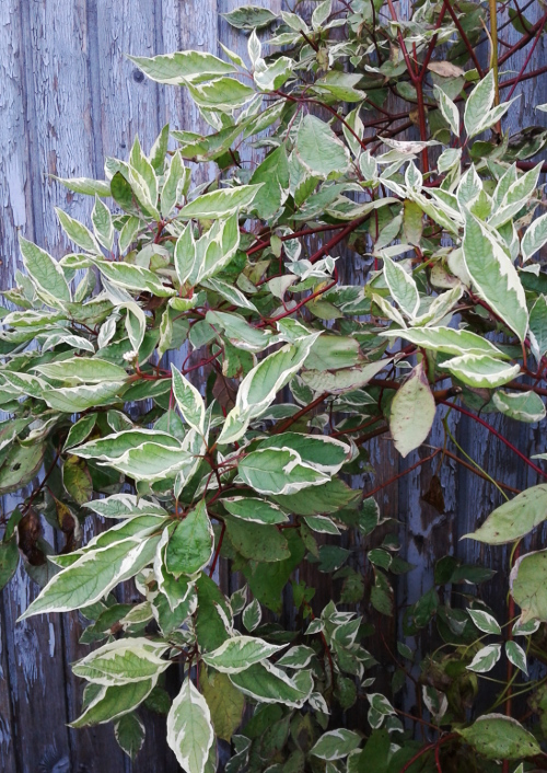 The bushes are still green as this Cornus alba variegata. The evergreen rhododendrons are OK in autumn rainy weather. This one is 'Helsinki University'. Yesterday I feed all rhododendrons with potassium and magnesium for better wintering.